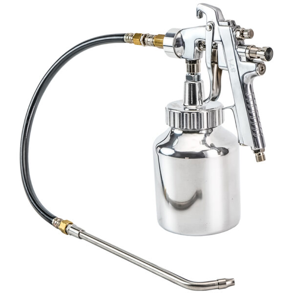 Air Undercoating Gun that’s excellent for applying automotive rust proofing, rubberized undercoating, chip guard, truck bed liner and other general purpose coatings. Gun can be used with oil, solvent and water-based materials.